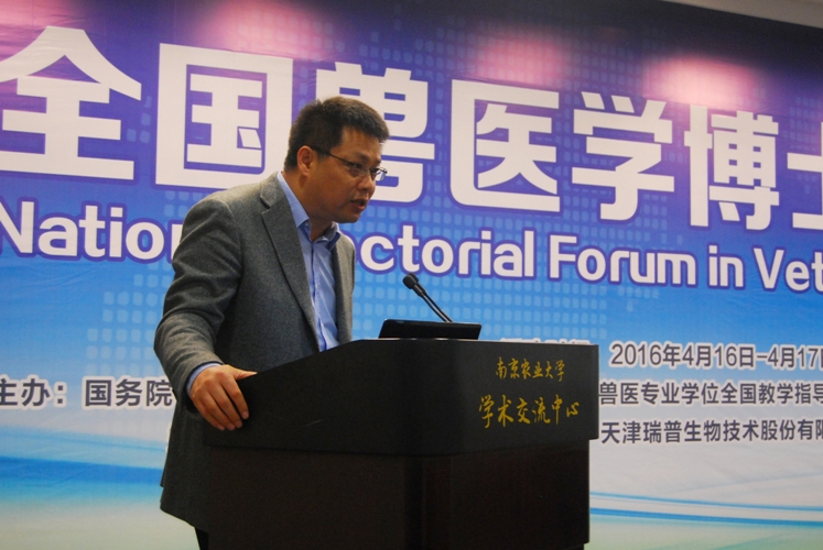 国务院学位委员会兽医专业学位教学指导委员会副主任陆承平教授、河南农业大学校长张改平教授分别致辞。陆承平指出,解决兽医问题离不开兽医专业学位人才的培养。张改平提出,要把论坛办成全国在读兽医学博士生学术交流的桥梁和纽带,形成特色,成为品牌。