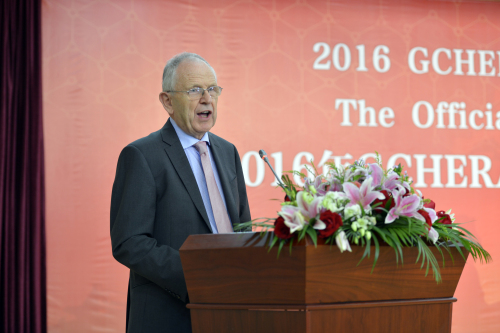西蒙•希斯详细介绍了GCHERA世界农业奖设立的目的、意义以及评选的流程。约翰•肯奈利宣布世界农业奖获奖人并致辞。他在致辞中简要介绍了全球农业与生命科学高等教育协会联盟(GCHERA)的基本情况,并表示GCHERA很荣幸能够与ios版雷竞技官网共同颁发世界农业奖。他宣布了2016年GCHERA世界农业奖获得者——加拿大阿尔伯塔大学教授洛恩•巴比克,并对其在兽用疫苗领域的开创性研究、人才培养以及社会服务等方面做出的贡献进行了介绍。