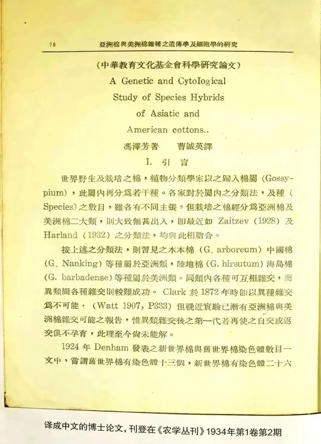 《中棉之孟德尔性初次报告》