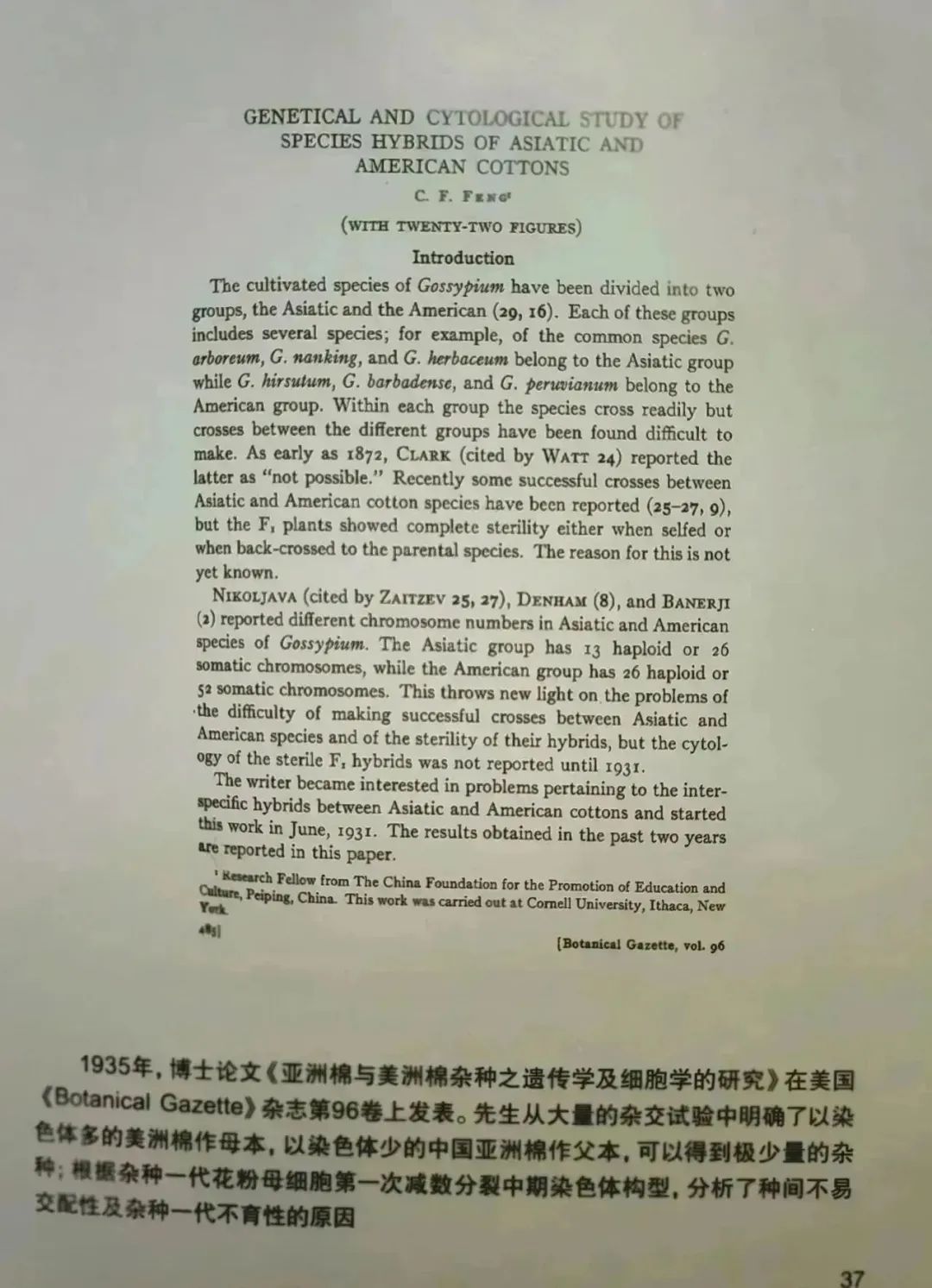 可以说,郭仁凤、章之汶、过探先、孙恩麐、王善佺、叶元鼎等,是中国近现代棉花育种的先驱,即将隆重登场的便是冯泽芳。