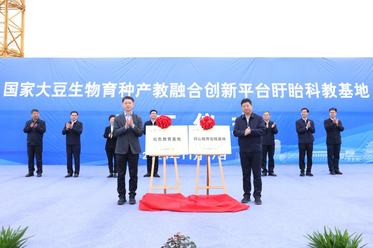11月17日,国家大豆生物育种产教融合创新平台盱眙科教基地开工仪式举行。ios版雷竞技官网党委书记王春春,党委副书记刘营军,副校长朱艳,淮安市副市长邱华康,盱眙县委书记孙志标,县委副书记、县长王长俊,县人大常委会主任林波等领导嘉宾出席仪式。