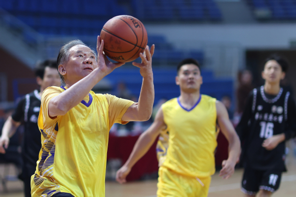 开赛前,沈其荣院士与新生篮球队代表互赠球衣。“嘟——!”随着开球哨响,有机肥团队与新生联队的篮球赛在欢呼声中开场,两支球队你拼我抢、酣畅激烈。接球、起跳、投篮、命中,现场新生为院士的矫健身手、与队友的默契配合鼓掌喝彩。随着最后一声哨响,沈其荣出压哨三分球,球在最后一刻进入篮筐,“沈院士的第九个三分!”燃爆全场气氛。