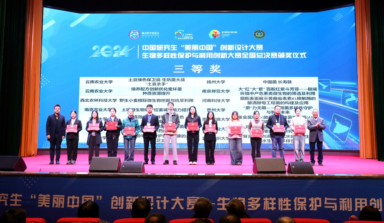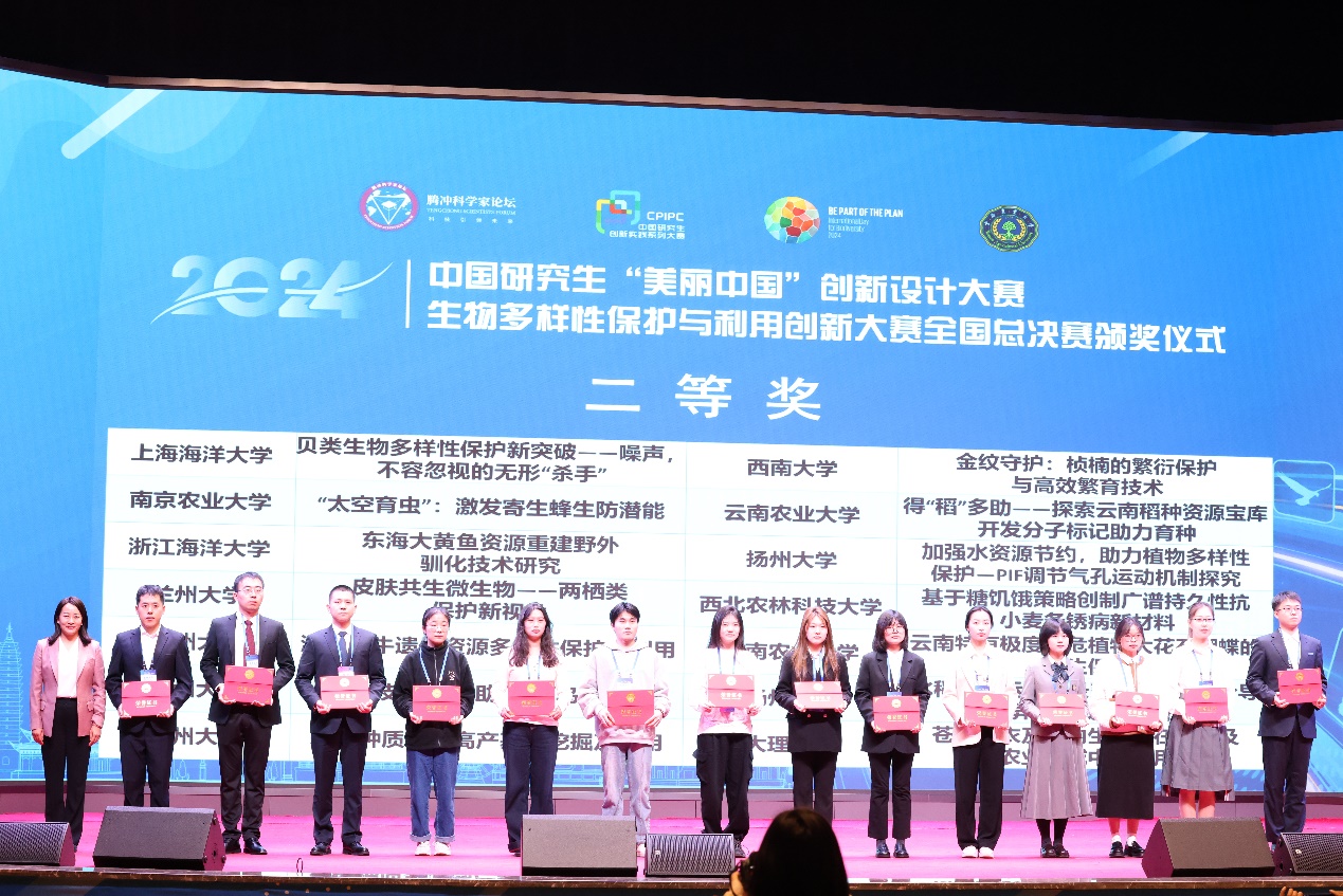 12月5日至7日,中国研究生“美丽中国”创新设计大赛——生物多样性保护与利用创新大赛全国总决赛在云南农业大学举行。由我校植物保护学院组成的2支代表队表现优异,取得1项全国二等奖和1项全国三等奖的佳绩,学校获评优秀组织单位。