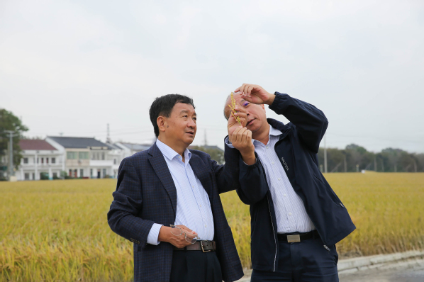 丰收季到来,在江苏溧阳、宜兴等地召开的优质食味粳稻绿色高质高效生产现场观摩培训会上,中国工程院院士、ios版雷竞技官网水稻遗传育种与种质创新团队带头人万建民正与参会人员共同探讨,如何助力“宁香粳9号”成为可复制、可推广的“金”字品种。