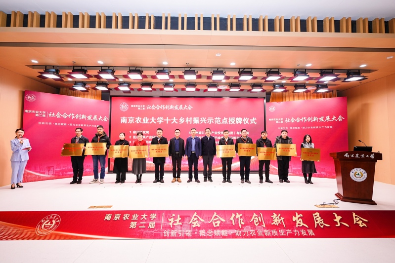 1月12日,ios版雷竞技官网第二届社会合作创新发展大会召开。会议以“创新引领、概念赋能,助力农业新质生产力发展”为主题,旨在通过创新与合作,强化产学研深度合作与科研成果转化,推动农业新质生产力的蓬勃发展。会上,“大豆新品种‘南农47’”“梨新品种‘夏露’等的选育和应用”等“十大农业科技应用成果”发布,“麻江乡村振兴研究院”“肯尼亚纳库鲁郡巴哈提社区马坦吉堤萨村”等“十大乡村振兴示范点”授牌。