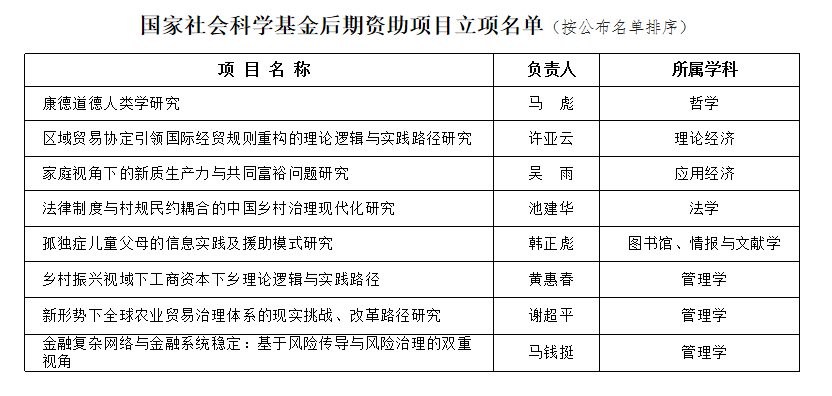 近日,全国哲学社会科学工作办公室发布2024年国家社会科学基金后期资助暨优秀博士学位论文出版、优秀学术著作再版项目立项名单,我校获批后期资助项目8项,其中重点项目1项,获资助数量较去年翻番。