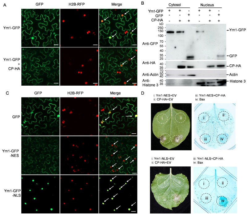 图4 Ym1-CP互作导致Ym1的核-质重定位和激活