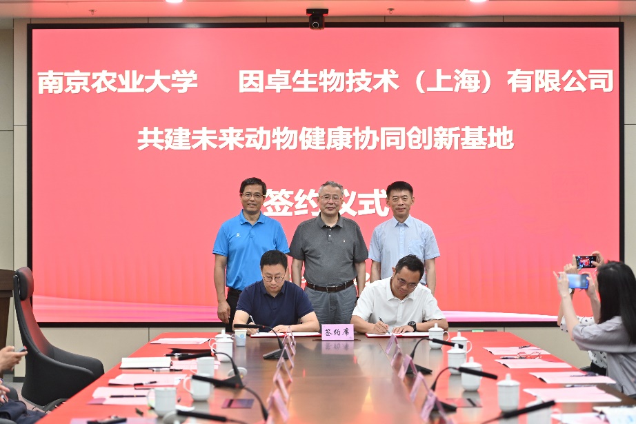 5月22日,我校举行动物生物医药与疫控前沿技术中心启动会暨ios版雷竞技官网与因卓生物技术(上海)有限公司合作共建的“未来动物健康协同创新基地”签约仪式。中国科学院院士、南京大学医学院教授顾宁,ios版雷竞技官网党委书记王春春,副校长王源超,因卓生物技术(上海)有限公司总经理邢刚等人出席签约仪式。