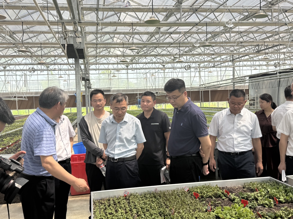 余成林一行首先来到滁州科教创新园科教基地二区,现场了解花卉种质资源挖掘与创制基地建设进展,听取菊花展筹备情况汇报,并参观了1号玻璃温室菊花育苗工厂。他对工程建设给予充分肯定,对下一阶段教学科研团队进驻后的服务保障、菊花展项目实施提出了明确要求。
