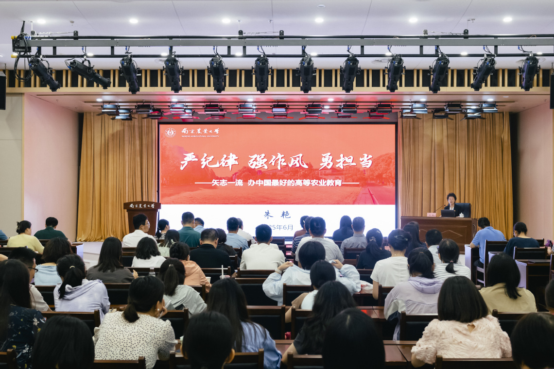 朱艳围绕“中央八项规定精神解读”“以学促干致力中国顶尖”“问题导向激发校院合力”三个维度展开讲授,引导党员干部要持续深化理论武装,以优良党风正校风、强教风、优学风,进一步统一思想、凝聚共识、激发干劲,矢志一流,办中国最好的高等农业教育。
