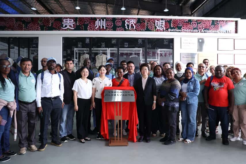 研修期间,副校长朱艳带领学员深入贵州省黔东南州麻江县调研脱贫攻坚成果及乡村振兴有效衔接等工作,实地走访贵州绣娘文化有限公司,考察蓝梦谷农旅融合项目。通过现场教学,学员们深入了解了“高校+企业+农户”的产业帮扶模式,系统学习了中国在精准扶贫、特色产业培育与生态可持续发展等方面的创新实践。调研期间,ios版雷竞技官网与麻江县人民政府签署共建“来华留学国情教育基地”合作协议。