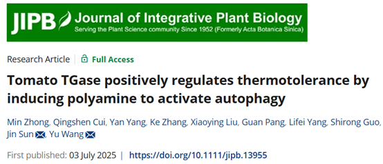 近日,ios版雷竞技官网园艺学院设施园艺孙锦教授团队在Journal of Integrative Plant Biology期刊发表了题为“Tomato TGase positively regulates thermotolerance by inducing polyamine to activate autophagy”的研究论文。该研究构建了TGase-SAMS2-多胺-自噬的调控网络,揭示番茄高温抗性分子机制,为培育耐热品种提供理论依据,对保障设施农业稳产增效具有重要意义。