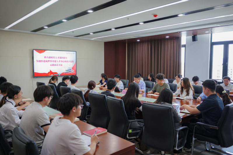 在金融学院,王春春作题为“助力新时代人才强国建设 为加快建成世界重要人才中心和创新高地贡献南农力量”的专题报告。他从人才强国战略的历史轨迹、重要意义、历史性成绩、南农贡献、挑战与机遇等方面,用农业科技突破案例解码人才战略,以金融专业视角锚定青春坐标,让“世界重要人才中心和创新高地”的宏大蓝图在互动中变得可触可感。