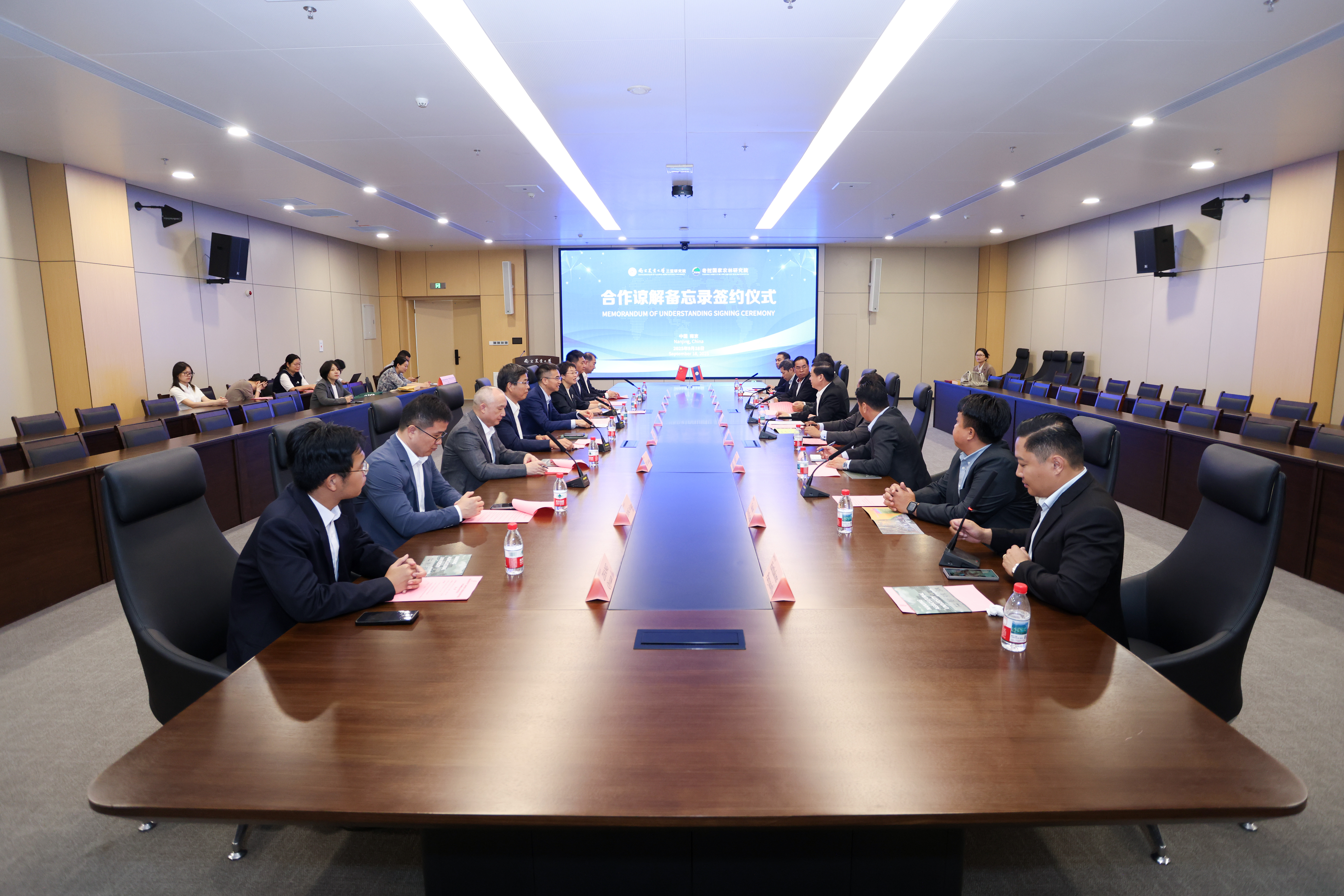 会谈后,副校长、三亚研究院院长王源超与老挝国家农林研究院代理院长佩玛尼森·桑赛雅伞(Phetmanyseng Xangsayasane)代表双方签署合作谅解备忘录,陈发棣与纪高·辛纳翁共同见证。根据协议,未来双方将重点推进农业科技示范园与中老大豆联合研究中心建设,深化师生互访、联合科研及国际学术会议等领域合作。