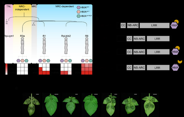 Rpi-brk1:通过对马铃薯NLRome中非典型结构域(ID)的进化分析,团队发现HMA结构域在NLR中快速进化,并鉴定到一个携带重金属结合域(HMA)的NLR基因,可直接识别效应蛋白AVRbrk1,其抗病作用依赖HMA结构域与病原菌效应子的直接互作。