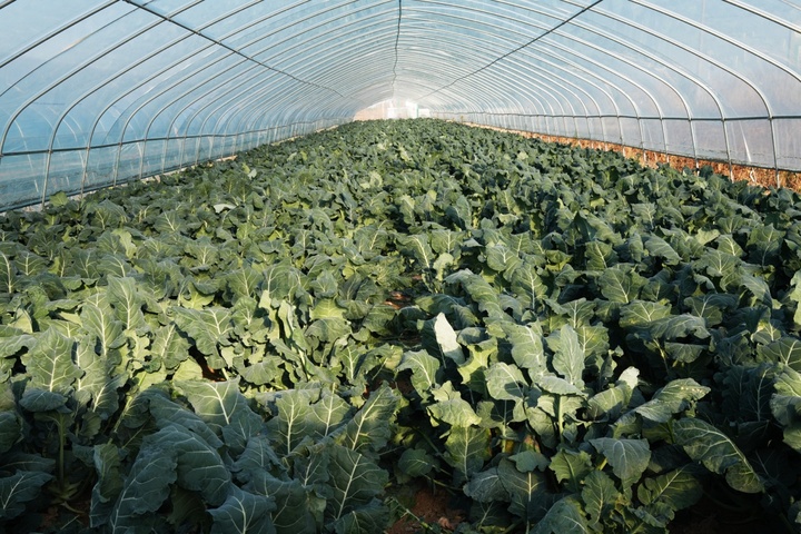 目前,响水县西蓝花产业已基本实现全链发展。规模基地全面覆盖,智能化育苗全程护航,大量标准化的温室大棚组成了一个规整的阵列,由统一的合金骨架支撑,覆盖其上的塑料薄膜呈现出标准的半圆形。