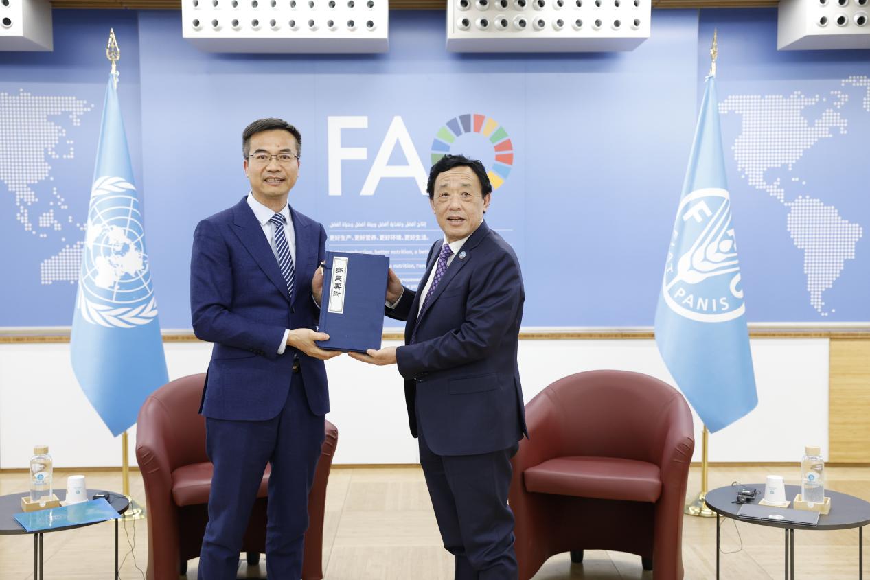 访问意大利期间,代表团拜会了联合国粮食及农业组织(FAO)总干事屈冬玉。屈冬玉对陈发棣一行到访表示欢迎,并表示,FAO与ios版雷竞技官网的交流与合作有着深厚的历史渊源;面向未来,愿意着力支持双方在科学研究、人才培养等更广泛的领域开展实质性合作,为实现“四个更好”愿景积极贡献力量。陈发棣介绍了南农建设发展情况,以及与FAO合作实施的相关项目的最新进展和成果,并代表学校向FAO新建成的博物馆赠送我校珍藏的明嘉靖刻本《齐民要术》的复制本,以祝贺FAO成立80周年。