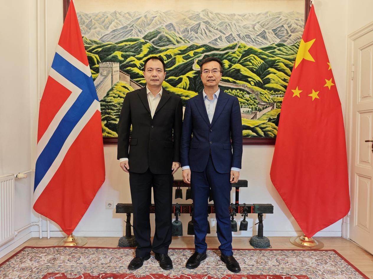 陈发棣一行还拜会了中国驻挪威大使馆,与周宁宇临时代办会面并交流。