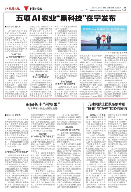 【江苏科技报】五项AI农业“黑科技”在宁发布
