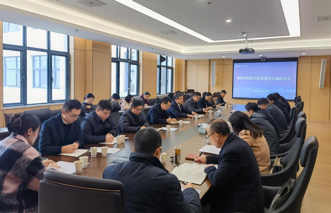 12月19日下午,我校在滨江校区行政楼A418组织召开廉政风险防控体系建设交流研讨会。校党委副书记、纪委书记吴荣顺出席会议,机关党委、部分单位负责同志,二级单位纪委书记、纪检委员以及专职纪检监察干部、巡察干部参加会议。