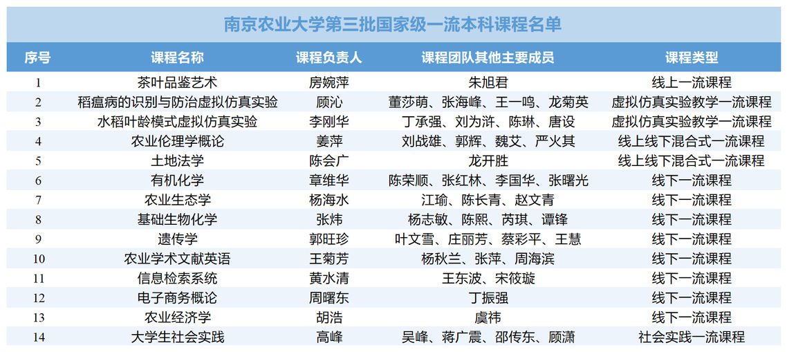 近日,教育部正式公布第三批国家级一流本科课程认定结果,ios版雷竞技官网14门课程入选,其中线上一流课程1门,虚拟仿真实验教学一流课程2门,线上线下混合式一流课程2门,线下一流课程8门,社会实践一流课程1门。