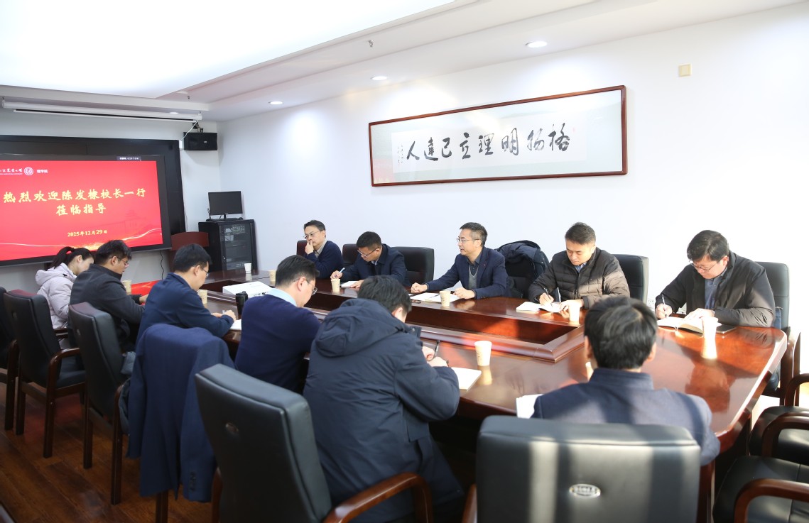 在理学院,陈发棣指出,学院要立足新格局认真谋划“十五五”发展,明确学院发展定位,结合国家战略需求和科技前沿,大力推动基础学科与学校优势学科交叉融合,培育新增长点,实现学院人才、团队、学科建设取得重点突破;多措并举加强基础课教学,为提升学校人才培养质量强化基础;要注重学院制度和文化建设,建立健全体制机制和制度体系,进一步激发发展活力,营造激励师生干事创业的良好软环境,努力提振发展信心;要加强领导班子建设,不断提升把方向、谋发展、抓落实的能力水平,凝心聚力、以上率下,团结带领师生推动学院实现新发展。