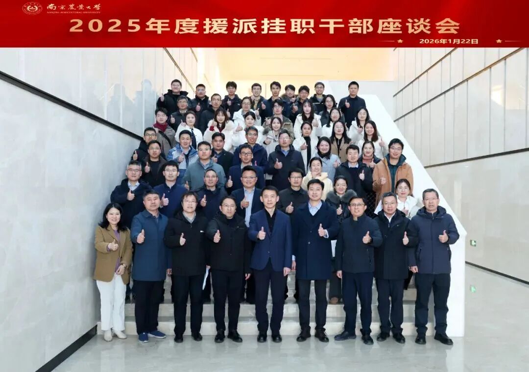2025年,学校先后共有44位干部教师奔赴全国各地开展援派挂职工作,其中,高级职称34人,“双肩挑”干部8人,管理干部8人,专任教师等28人。同时,先后开展了专职辅导员校内挂职、岗位交流辅导员等多项校内挂职锻炼项目,共计25人参与其中。2026年,学校将继续选派优秀干部教师参加校内外挂职锻炼,为落实立德树人根本任务,助力地方经济社会发展,实现教育强国、农业强国贡献南农智慧和力量。