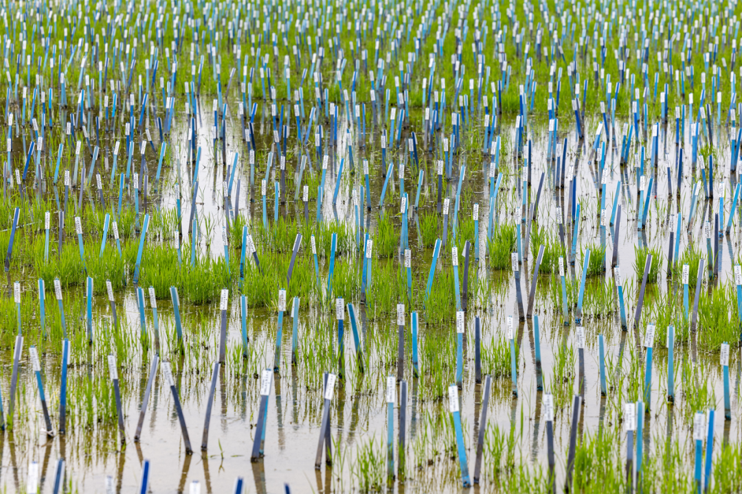 与广袤稻田的规模化、机械化插秧不同,师生们在田里插上的是用于育种的实验材料,一亩一方的稻田一般就有将近2万株的材料。