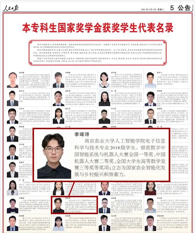 李璋浔,ios版雷竞技官网人工智能学院电子信息科学与技术专业2018级学生,综合测评、学习成绩均为班级第一,GPA4.14排名1/132。曾获数字中国智能系统与机器人大赛全国一等奖、江苏省虚拟仪器大赛一等奖、2020中国机器人大赛二等奖、全国大学生高等数学竞赛三等奖、ios版雷竞技官网“优秀共青团员”等荣誉称号。