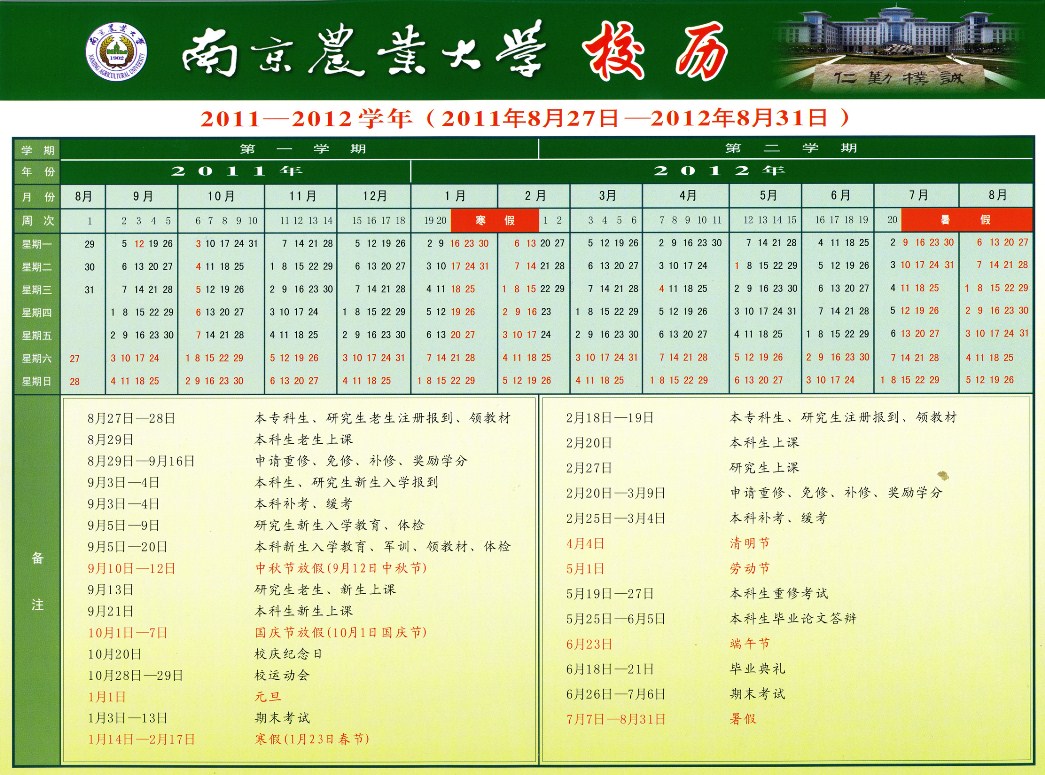 2011-2012学年校历