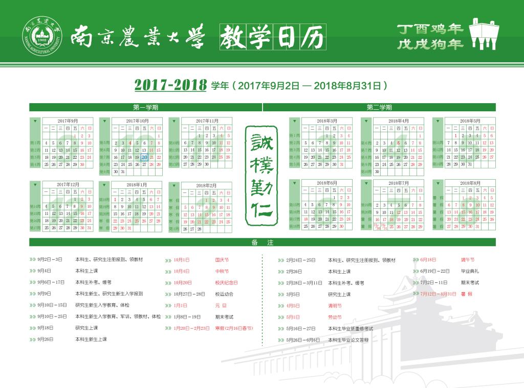 2017-2018学年教学日历
