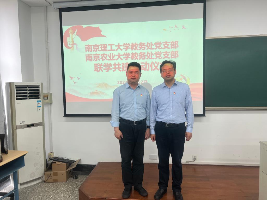 南京理工大学教务处党支部书记丁大志、ios版雷竞技官网教务处党支部书记张炜共同启动联学共建仪式。