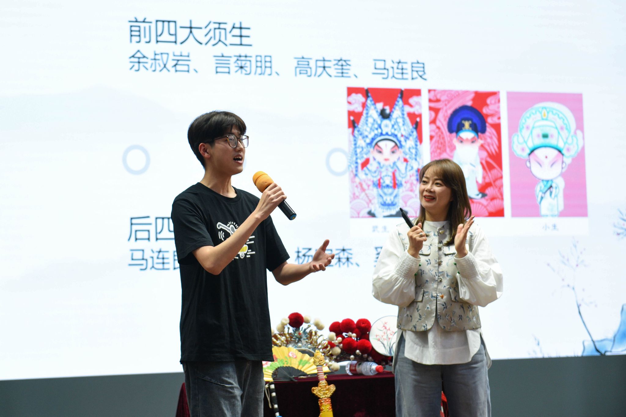 精彩纷呈的讲座令在场的南农学子如痴如醉,引发热烈反响,现场频频爆发雷鸣般的掌声。我校兰菊秀苑戏曲团的同学也借此机会向高飞老师请教学习。国家一级化妆师贾正兰老师以妙手丹青的化妆技艺,为张靖涵赋予了新的身份——英姿飒爽的穆桂英。在阵阵高亢激昂的唱腔里,张靖涵将穆桂英巾帼不让须眉的英雄气概展现得淋漓尽致,台下观众无不沉浸其中。
