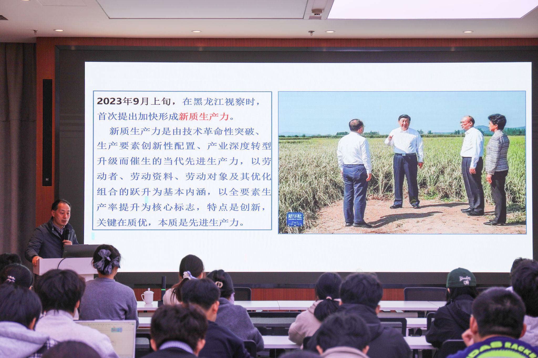 党课最后,田永超教授强调:“强国必先强农,农强方能国强。”他勉励在场师生:要勇立时代潮头,将智慧农业作为建功立业的广阔舞台;要敢于创新突破,将攻克“卡脖子”技术作为青春奋斗的鲜明注脚;要深入田间地头,将论文写在祖国的大地上,为推动农业现代化、建设农业强国贡献智慧与力量。