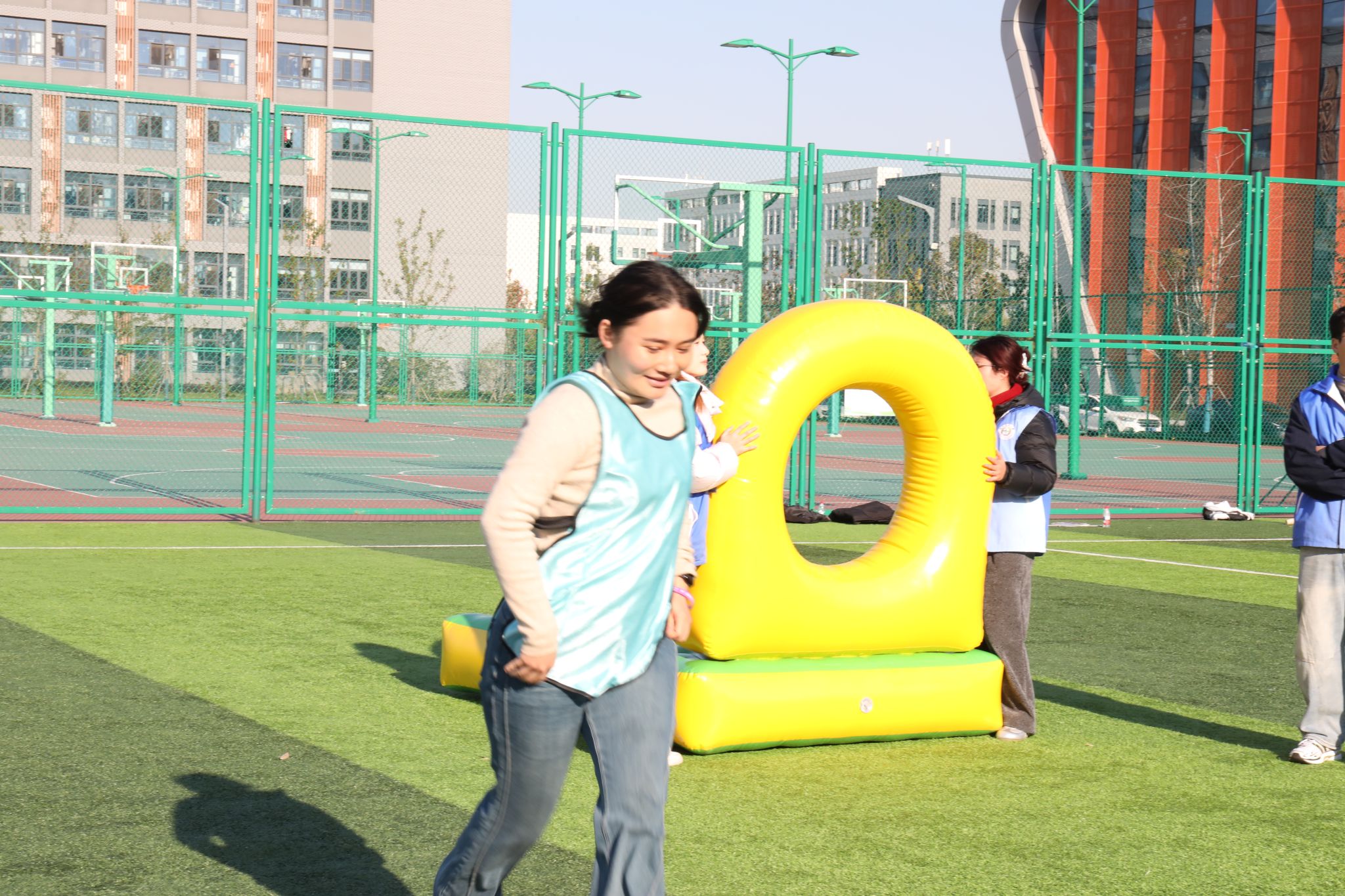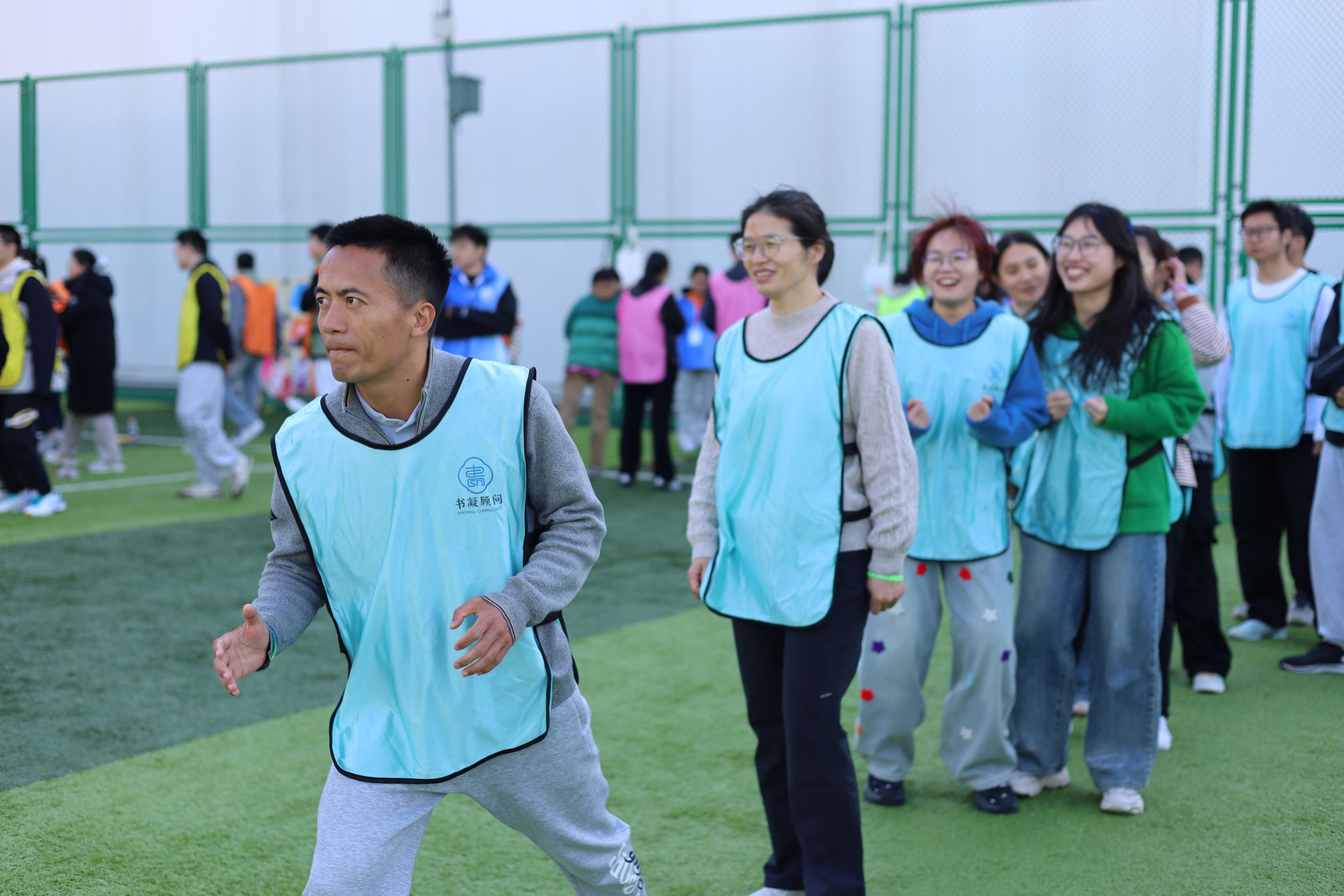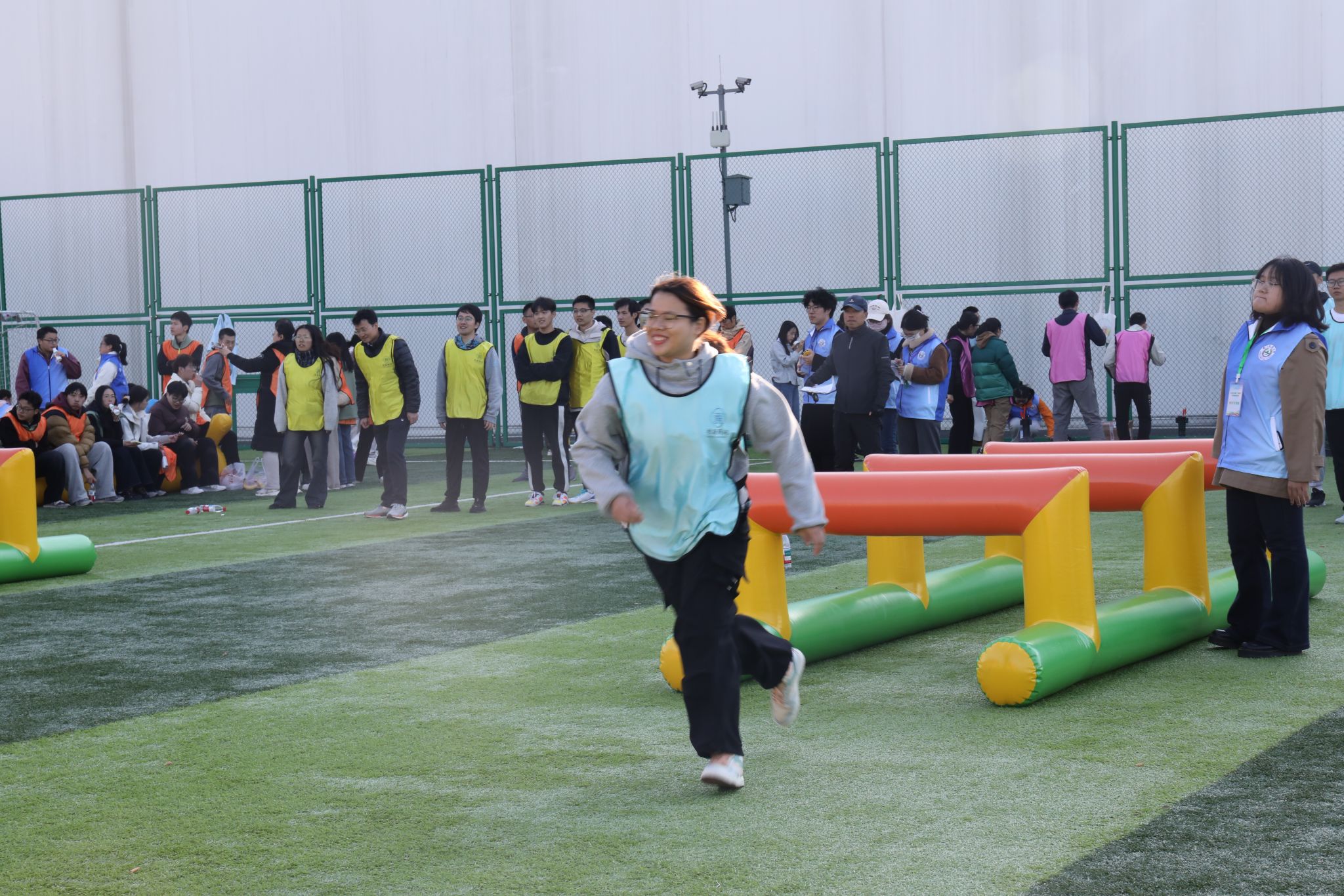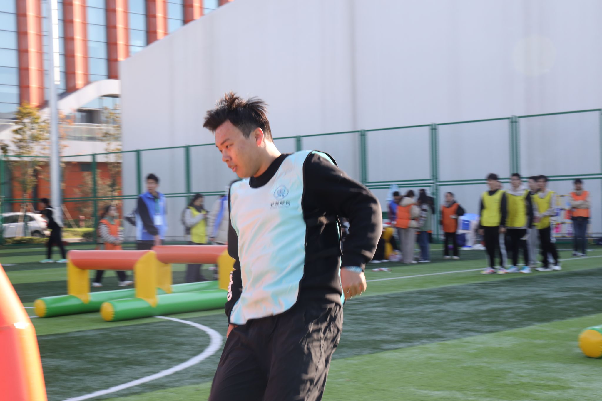 赛场上,我院师生和谐奋进的场景随处可见。“研途·学海滚滚”项目中,师生协同托举道具,以统一节奏稳步前行,额间汗珠与默契眼神相映成趣;“研海破浪行”环节,双方配合紧密、高效联动,现场助威声此起彼伏;“稻田越野赛”里,师生交接瞬间的有力击掌,既是任务传递,更是信任彰显;集体拔河时,全体队员凝心聚力、奋力拼搏,充分展现团队韧性。待赛师生在赛场周边组成后援团队,实时助威鼓劲,并提供补给、装备整理等保障服务,场内外高效联动进一步凝聚团队合力,为参赛队员筑牢坚实后盾。