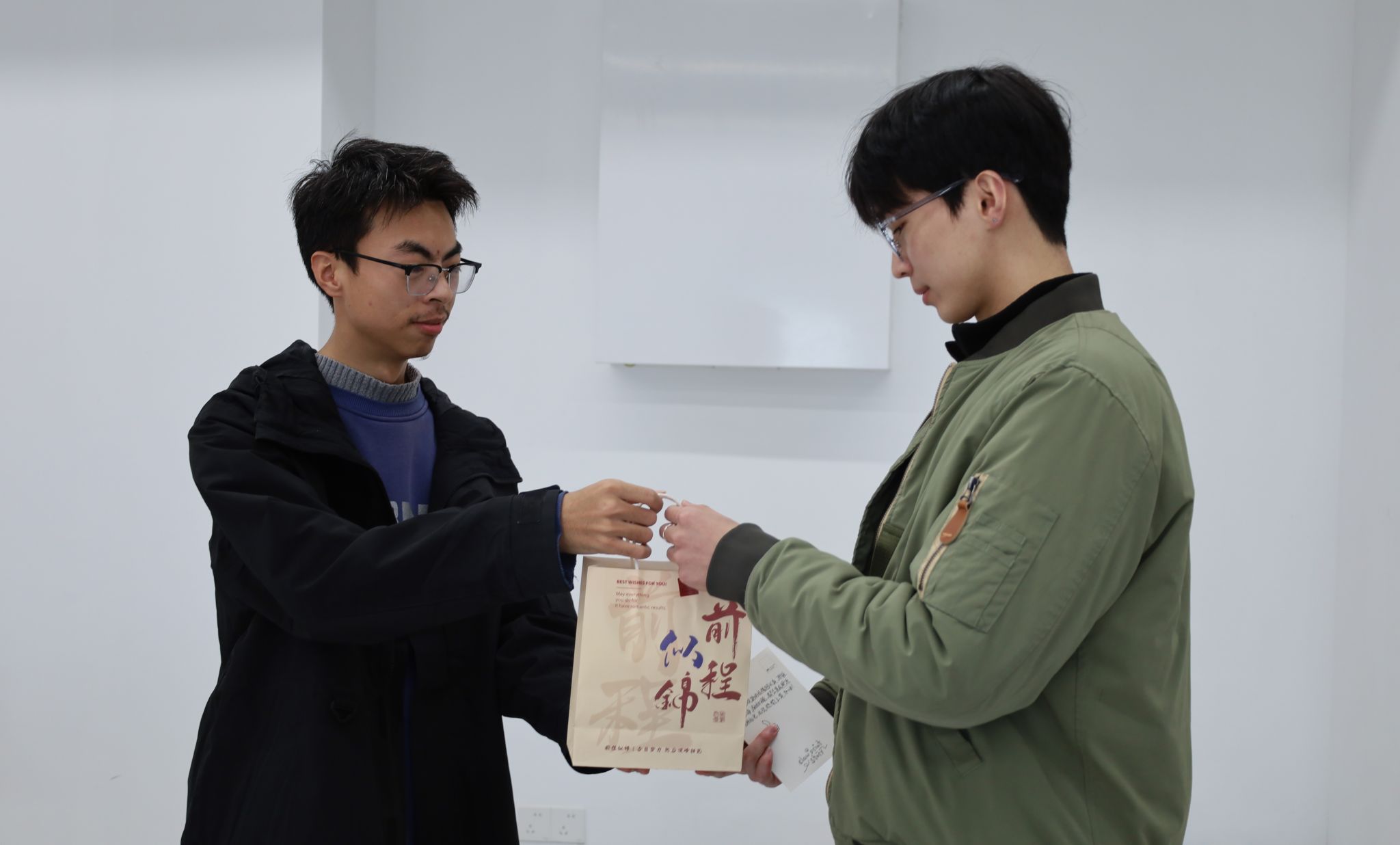 未雨绸缪,情系研途。活动筹备阶段,学院便深入考研学生群体,精准调研他们的实际需求。线上抽奖环节,为学子们送上实用的备考物资;而一封封由同学们亲笔书写的祝福信,则成为了最动人的礼物。“一战成硕”的坚定信念、“笔锋所至,心之所向”的美好期许、“愿你披荆斩棘,终抵理想彼岸”的真诚祝愿……每一笔都饱含着对学长学姐的深情厚谊,每一字都传递着并肩奋斗的温暖力量。