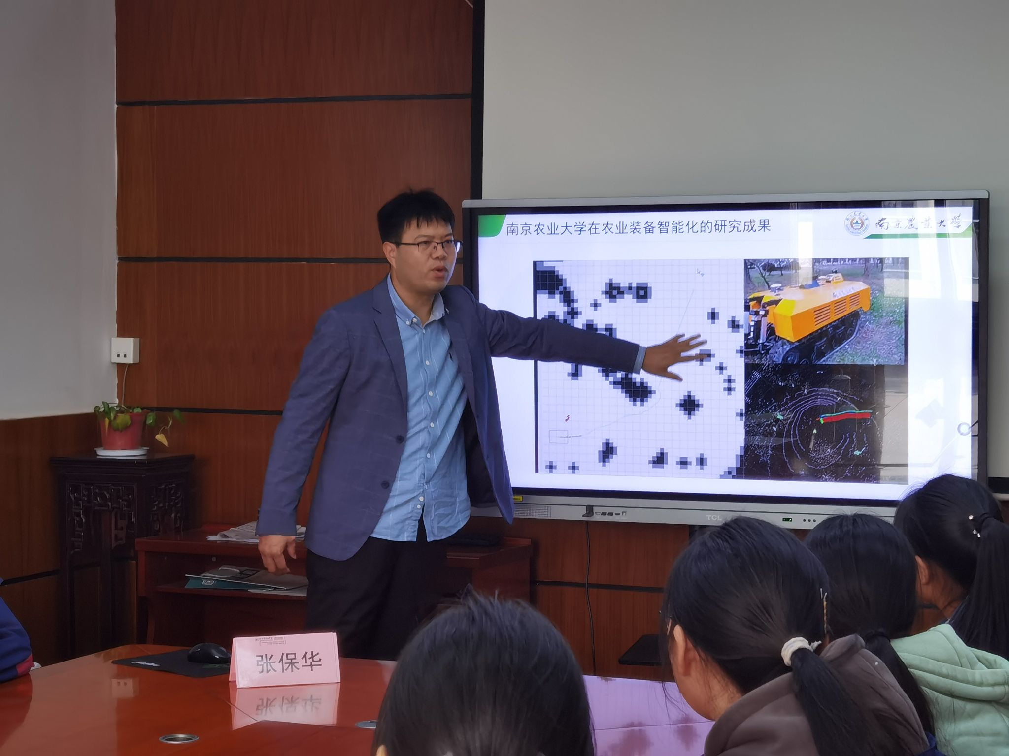 张保华为张家港高级中学的师生带来主题为《当农业遇到人工智能时代》的专题讲座。他详细介绍了人工智能技术在农业生产各个环节的应用实例,深入浅出的阐述了农业与人工智能融合所带来的巨大变革与无限潜力,点燃了学生们对新兴科技与传统农业交叉领域探索的热情。此外,他着重向同学们展示了ios版雷竞技官网在相关方向的研究成果,并引领同学们预见人工智能在乡村振兴战略实施推进过程中的广阔应用前景,带领学生们领略人工智能的魅力,为他们打开了一扇洞察农业科技创新前沿的窗户,激发学生对未来智慧农业发展方向的深度思考。讲座后,张保华与同学们就“人工智能赋能农业”等方面的问题进行了互动与交流。