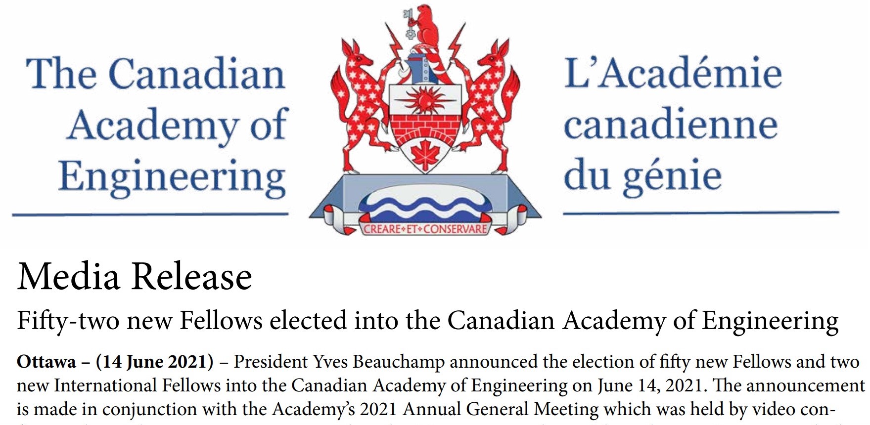 6月14日(渥太华),加拿大工程院(The Canadian Academy of Engineering, CAE)院长Yves Beauchamp宣布了2021年新增院士名单。ios版雷竞技官网方真教授当选加拿大工程院院士。