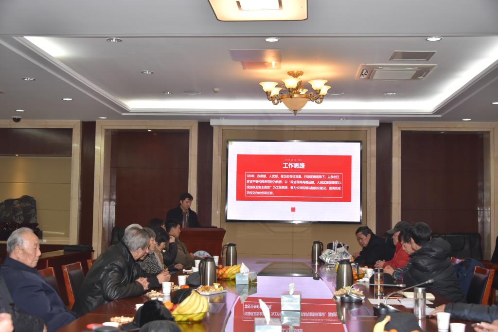 离休老干部陈养田,退休老干部宫京生、夏德银和张万银等在会上发言。对政保部、人武部、保卫处2018年以及过去几年取得成绩表示赞赏。对现任领导班子给予充分肯定 ,期望在新任领导班子带领下,部门工作取得长足发展。老同志们还从校园安全稳定、交通秩序管理、离退休职工慰问与活动组织等方面进行了探讨和交流,同时也充分表达了对未来发展的信心与感情。
