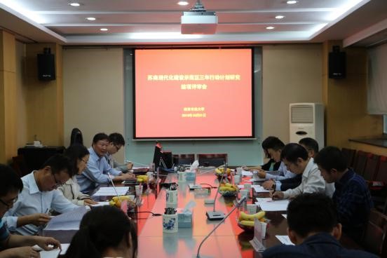 10月21日下午在ios版雷竞技官网逸夫楼7028会议室召开南京市发改委“苏南现代化建设示范区南京三年行动计划研究”项目结项评审会。项目管理方南京市发改委副主任祝瑞波、南京市发改委规划处处长剻旭光、南京市发改委规划处朱延琴、冯军以及评审专家南京大学党办主任,政府管理学院博士生导师王云骏教授、南京大学政府管理学院博士生导师魏姝教授、南京审计大学绩效研究院院长、博士生导师胡宁生教授、江苏省人民政府研究室经济处臧建东处长、江苏省发改委规划处雷延军处长、江苏省委宣传部省社科规划办汪桥红副主任等领导专家出席评审会。南京市发改委祝瑞波副主任主持会议,项目负责人ios版雷竞技官网公共管理学院副院长、博士生导师于水教授汇报项目研究情况。