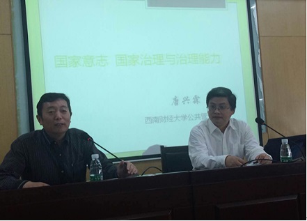 10月19日上午,西南财经大学唐兴霖教授在我院做了“国家意志、国家治理和治理能力”的学术讲座,报告由公共管理学院党委书记欧名豪教授主持,吸引了全院近百名师生聆听其学术讲座。