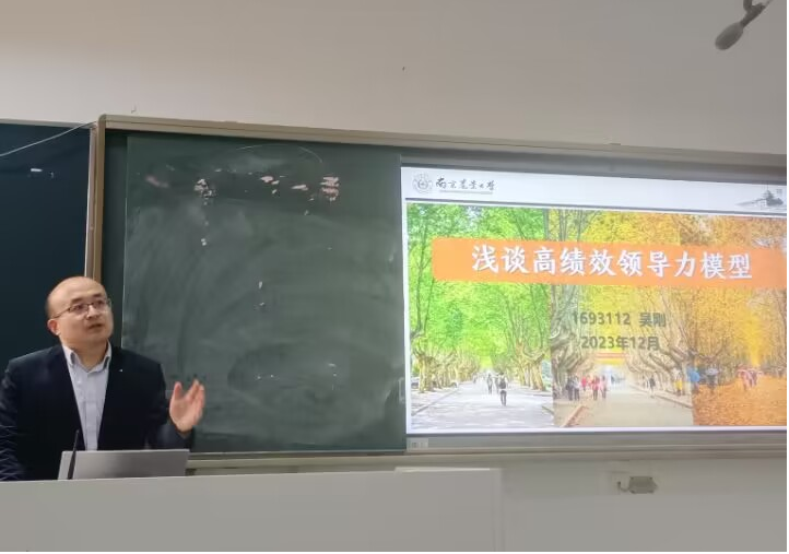 校友陈皓进行报告,他介绍了自身于国企、中车戚墅堰所、苏州华启智能科技股份公司多所公司的从业经历,并以“绩效”为切入点,详细解释了绩效、绩效管理及绩效与个人之间的关系,分享了绩效面谈及建立岗位绩效指标体系的重要性,并通过“杨三角模型”的分析,强调实现工作目标、能力、动力及活力之间的平衡。此外,嘱咐同学们保持稳定的心态和充沛的能量,不断促进个人自我提升,积极面对“积累期—变现期—衰退期”的职业成长过程,既要有刚性技能,又要有柔性做人做事的方法。
