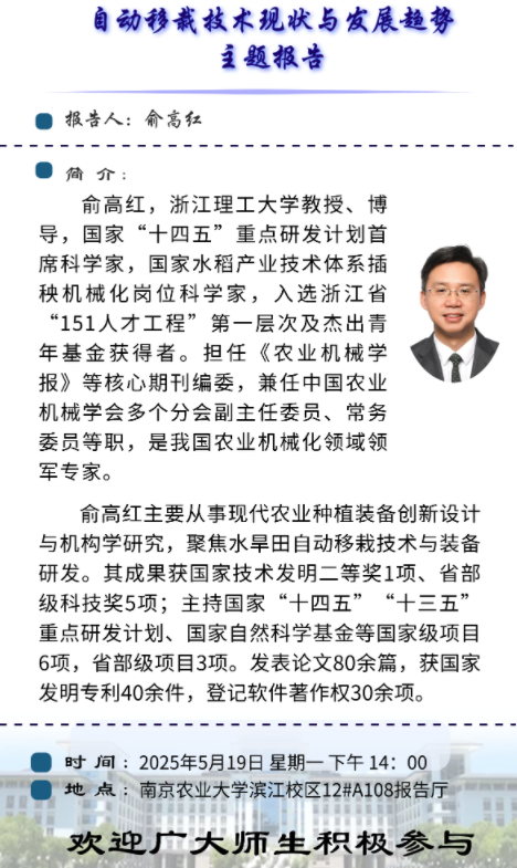 汇贤学术讲坛---自动移栽技术现状与发展趋势
