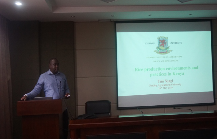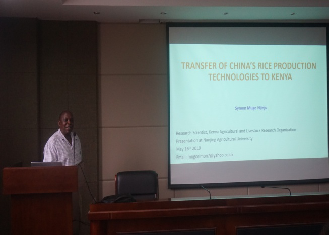 The last two presentations are on the rice cultivation technology transfer between China and Kenya. Dr. Njeru talked about Rice Production Environments and practices in Kenya. After introducing the importance of agriculture and rice in Kenya, he focused on rice production input analysis from an international perspective by comparison with the major Asian rice producers and other African countries. In the third part, he suggested how to build a viable rice production chain and achieve the national rice production strategy of Kenya from good practices of second, irrigation, agronomic practices, mechanization, increased pest & disease prevalence, high field & post harvest management, upstream value chain development. Dr. Njeru concluded by proposing key opportunities for China to invest in rice production in Kenya. Symon Njinju’s presentation focused on the transfer of China's rice production technologies to Kenya. Detailed information is given on rice production and consumption, challenges in rice production and areas from collaboration. According to him, appropriate technology needs to be applied in order to increase yields and income, and to create employment and reduce rice import bill. There are opportunities for China to collaborate with Kenya in rice production in such areas as increasing production, value addition, mechanization, and capacity building.