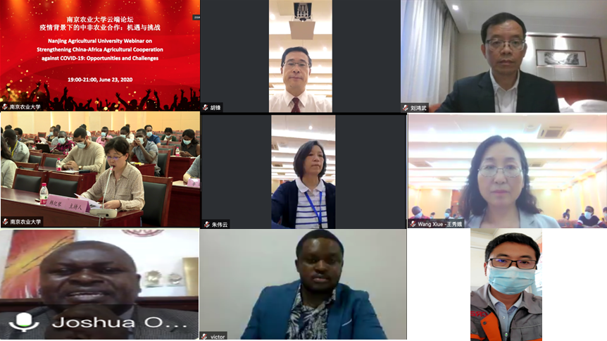 On June 23rd, Nanjing Agricultural University (NAU) held a webinar on strengthening China-Africa agricultural cooperation against COVID 19; opportunities and challenges. The key speakers in attendance included Prof. Hu Feng the Vice President of NAU, a professor of Ecology; Liu Hongwu, Founding Director of the Institute of African Studies, Zhejiang Normal University; Prof. Wang Xiu’e, the Vice-Dean of College of Agriculture, NAU; Prof. Zhu Weiyun from the College of Animal Science and Technology, NAU; Assoc. Prof Joshua Ogweno, Director of Confucius Institute at Egerton University, Kenya; and Hu Jigao, the Deputy General Manager of CR20G Mozambique Branch. More than 100 international students from African countries as well as students and staff representatives from the Colleges of Foreign Languages and Life Sciences were also in attendance. Prof. Han Jiqin, the Dean of the COIE presided over the webinar.
