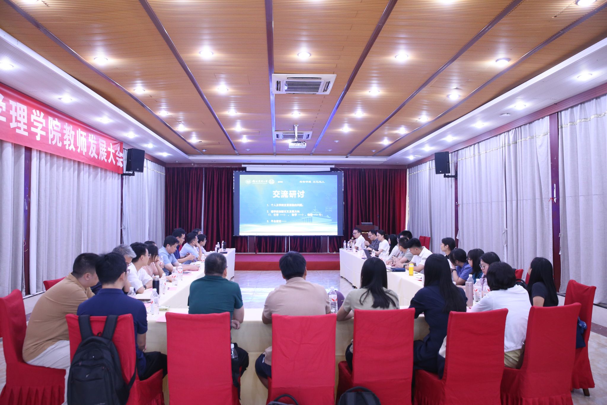 9月13日下午的专题研讨环节,全体参会教师围绕 “个人及学院发展面临的问题”“学科创新交叉发展方向”“平台建设”三大核心议题展开讨论,直面科研、教学、发展中的痛点难点,提出诸多富有建设性的意见与建议。学院领导班子认真倾听、逐一回应,现场氛围务实而热烈。