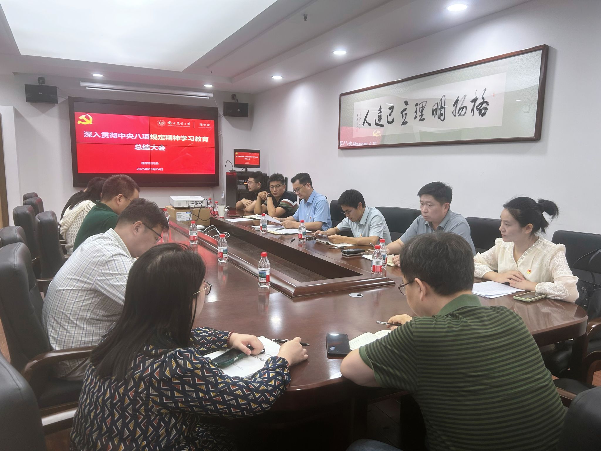 9月24日下午,理学院党委在教四楼B211会议室召开党委(扩大)会议暨深入贯彻中央八项规定精神学习教育总结会议,学院党委委员、全体党支部书记参加会议,会议由学院党委书记李日葵主持。
