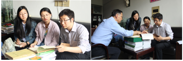 左图 陆老师给熊书记以及学生参阅书籍