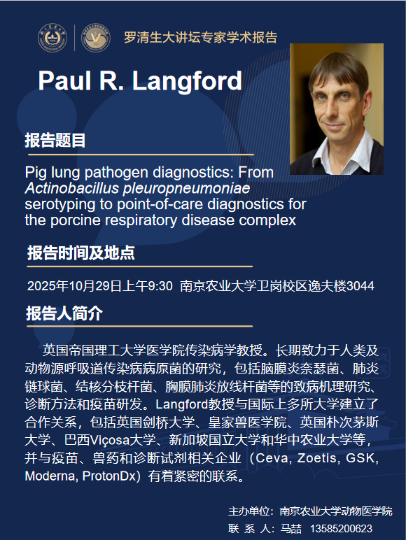 【罗清生大讲坛学术报告】Pig lung pathogen diagnostics: From Actinobacillus pleuropneumoniae serotyping to point-of-care diagnostics for the porcine respiratory disease complex
