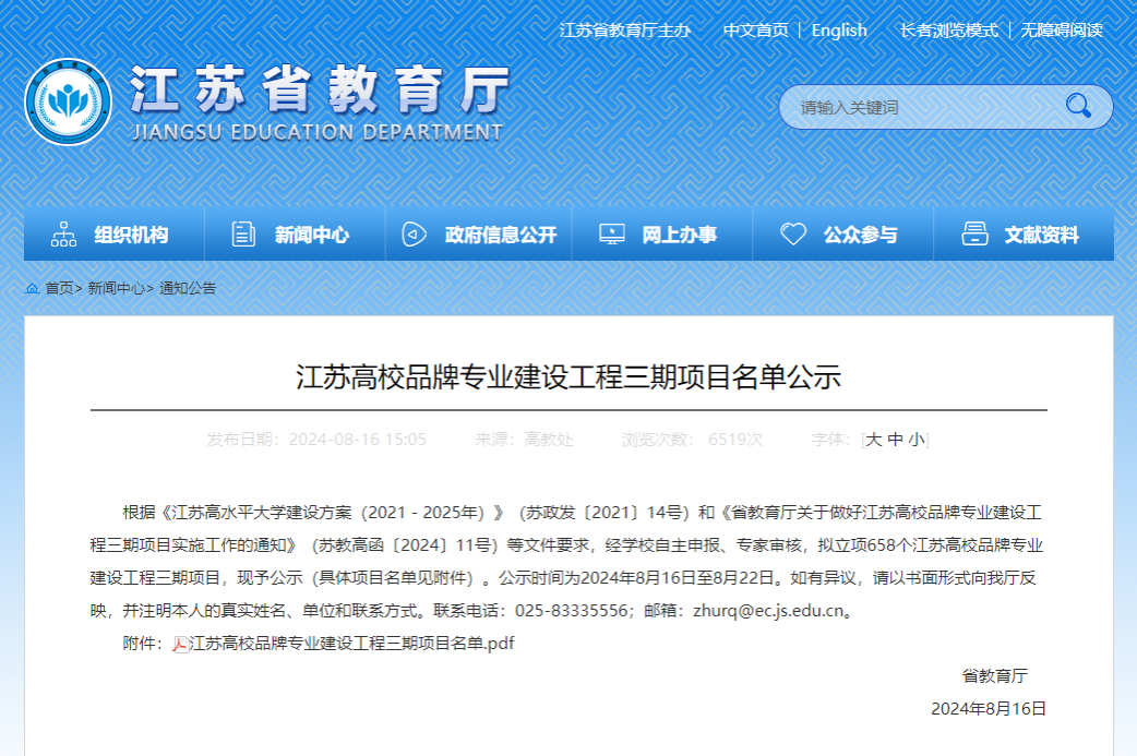近日,江苏省教育厅公布了江苏高校品牌专业建设工程三期项目名单,我院草业科学专业获批江苏高校品牌专业建设工程三期项目。今后我院将继续加强专业建设,不断提高人才培养质量。